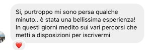 l’evento non verrà registrato perché sarà un’esperienza unica che co-creeremo insieme in quel tempo. Se non puoi esserci questa volta mi dispiace tanto e ti mando la mia energia!