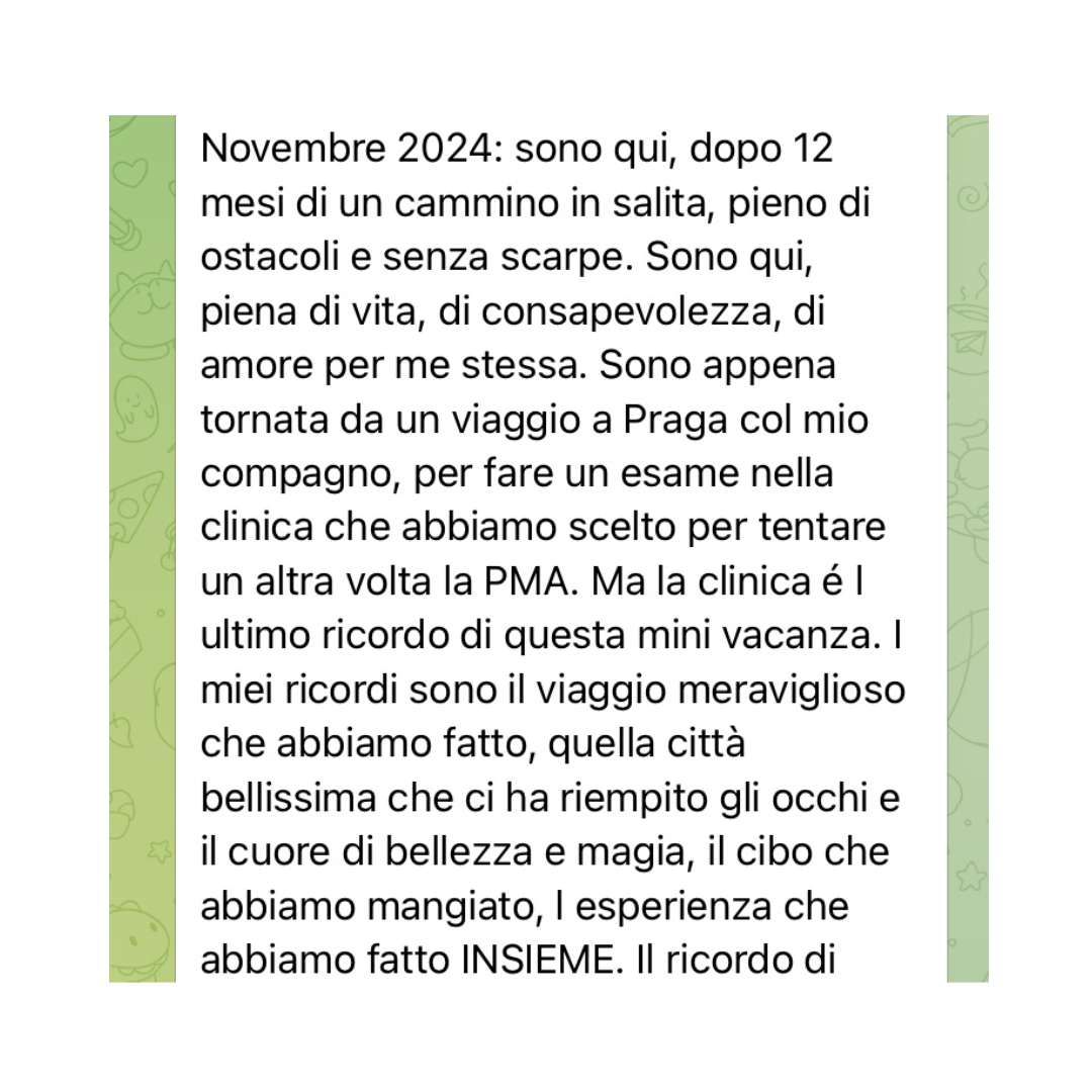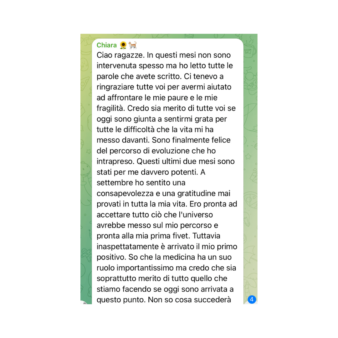 Ho creato questa community per aiutarti a navigare le sfide emotive, fisiche e psicologiche che l’infertilità comporta, perché credo fermamente che l’equilibrio interiore sia la chiave per affrontare ogni difficoltà con fiducia.