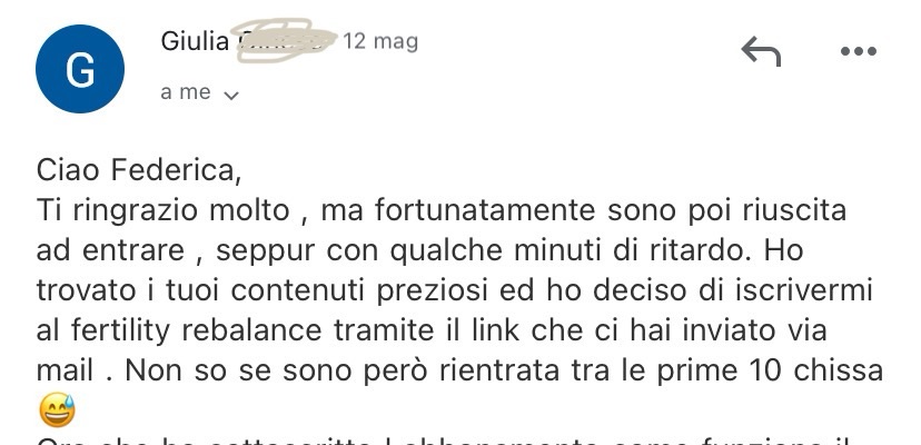 Se attivi il percorso FertilityRebalance tra le prime 10, riceverai anche una sessione 1:1 privata con me per personalizzare il tuo percorso